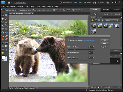 For the other lighting adjustment, go to Enhance, Adjust Lighting, Brightness/Contrast and work with the levels in the same manner as the Shadows/highlights.