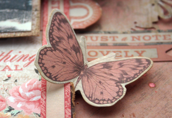 The Swirlydoos December kit was filled with gorgeous papers from Bo Bunny's Rose Cafe collection. Here I've layered some scraps under the photo and added some journal pieces from the Rose Cafe collection Noteworthy Journal cards at the bottom of the photo.