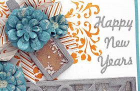 I decided to go for the BIG Bang and added a Champagne Bottle Shaker too! I used some gold embossing paste behind the champagne shaker to add a little gold to the card. The inside of the bottle shaker is a gold glittery paper that unfortunately, did not photo very well. I used Cheery Lynn's champagne shakers inside the champagne bottle. These come in the Champagne Bottle Shaker Kit , but you can just buy the shaker pieces too.