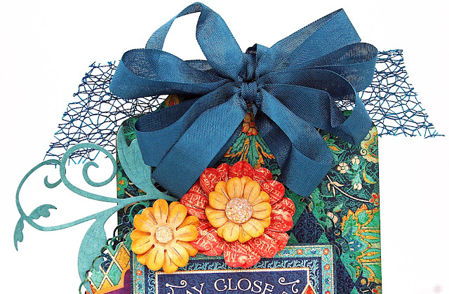 Sometimes I like to spread a little cheer with an inspirational card or tag. I usually chose a tag for my inspirational gifts and I like to attach them to a nice bottle of wine or other fun little gifts, like chocolate. 😊 I used lots of pretty Cheery Lynn Designs diecuts from Graphic 45's Midnight Masquerade collection to make this tag. I started by cutting two different size layers with the Horizon Oval Boutique Stacker Frames Die set as a base for my sentiment card.