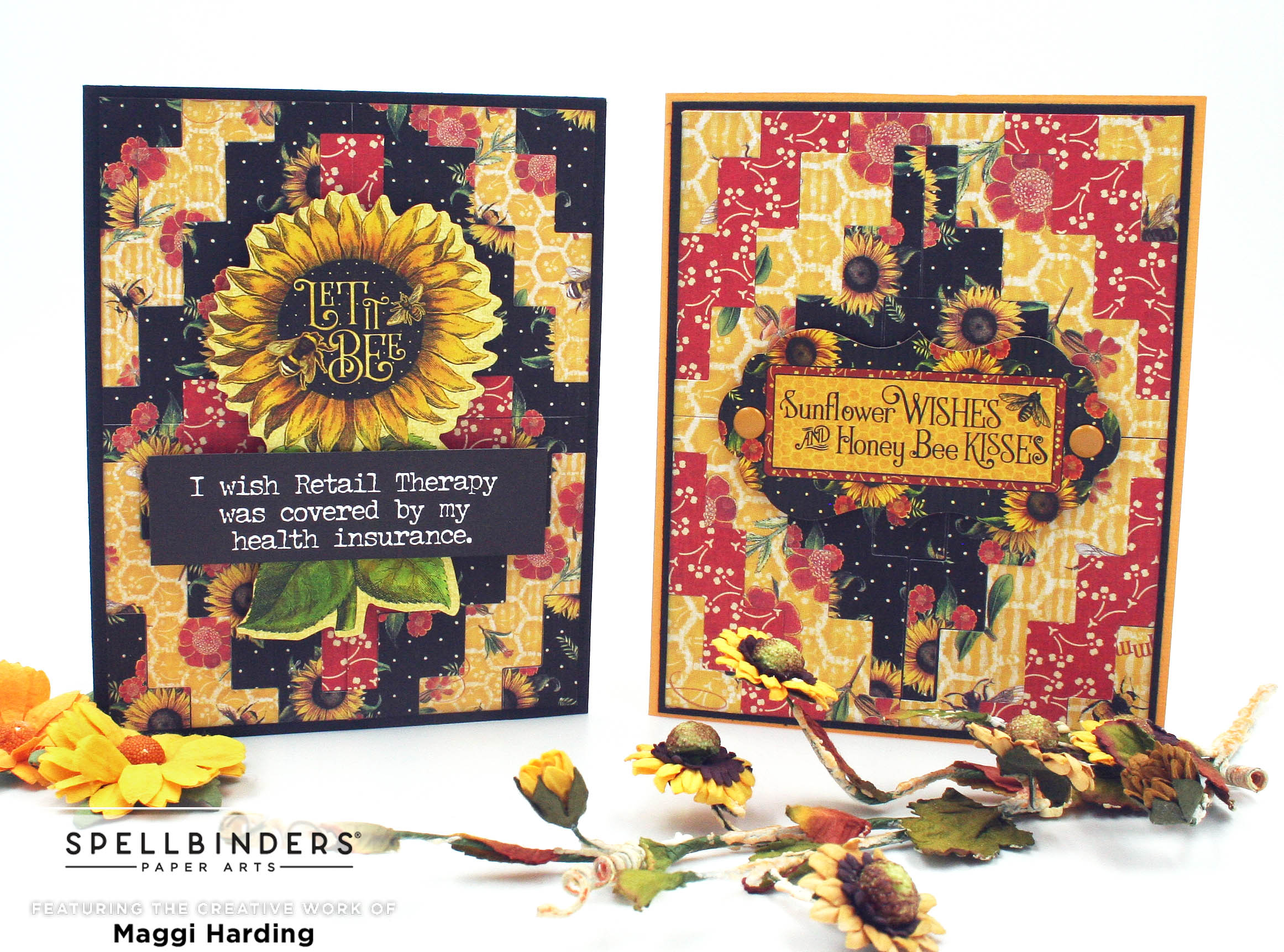 I love how these cards turned out! This is the Spellbinders Southwest Color Block die but it doesn't have to look southwest as you can see on these fun Graphic 45 Let it Bee cards.