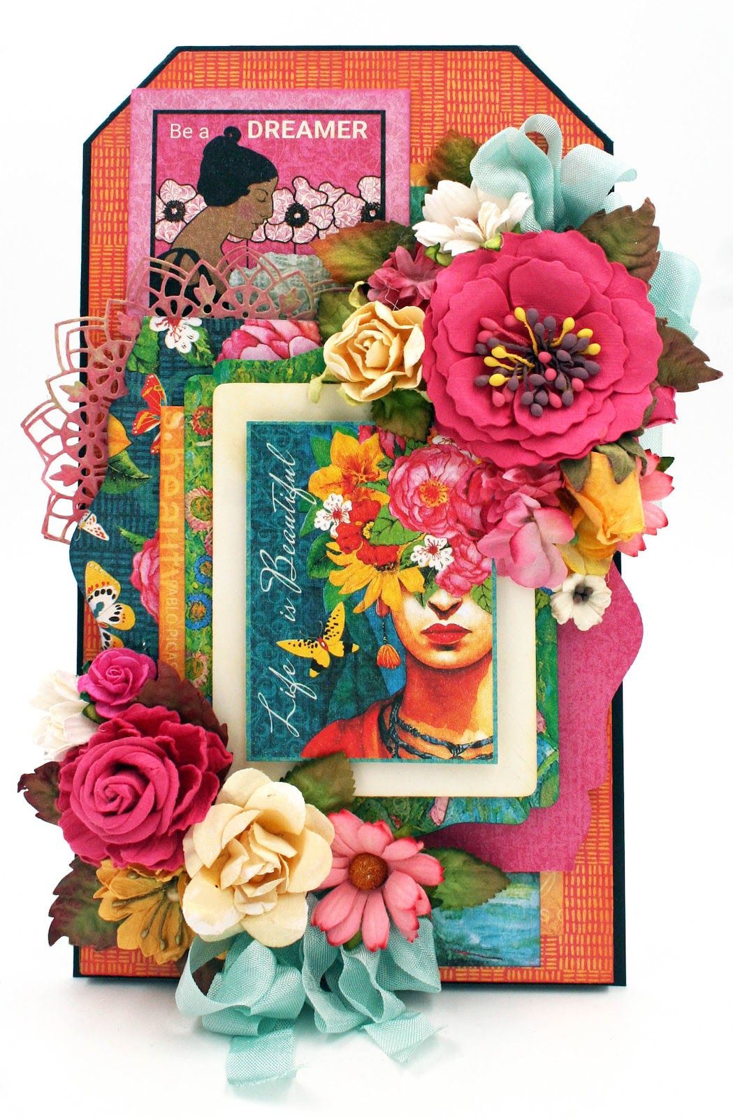 Here you can see how the layers add 3D dimension to this big 6" x 10" tag.